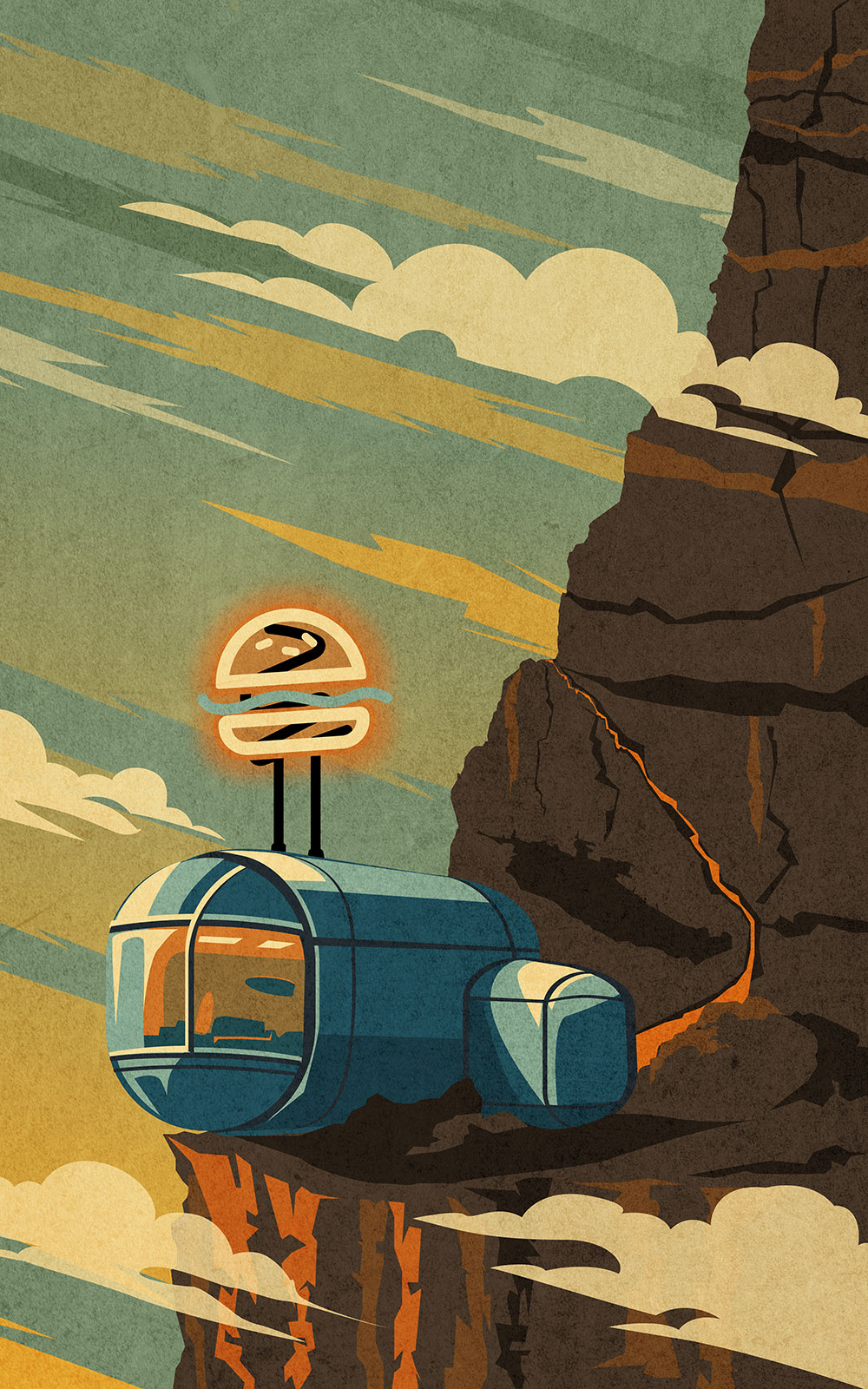 “—Put a permanent structure on it.” The man gestured at the room with a well-rehearsed swipe. “Build a diner on a cliff. A two-hour hike away from the nearest landing lot.”
